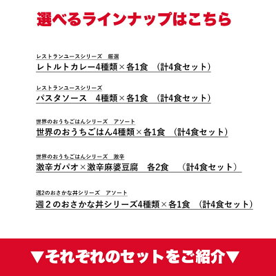 【品名(名称)】 11パターンから選べる レトルト惣菜福袋 4食セット 【原材料名】 ●チキンカレー200g 野菜(たまねぎ、にんじん)、鶏肉、小麦粉、ラード、砂糖、トマトペースト、食塩、ココナッツミルクパウダー、香辛料、カレー粉、コンソメパウダー、ガーリックペースト、調味料(アミノ酸)、(原材料の一部に乳成分、大豆を含む) ●欧風ビーフカレー 1袋 野菜(たまねぎ、しょうが)、牛肉、小麦粉、トマトケチャップ、カレールウ、ラード、チキンブイヨンパウダー、りんごペースト、ウスターソース、ポークエキス、チャツネ、バター、砂糖、食塩、ガーリックペースト、カレー粉、マッシュルームブイヨン、カラメル色素、調味料(アミノ酸等)、(原材料の一部に卵、大豆、バナナを含む) ●インド風バターチキンカレー 1袋 鶏肉、ソテーオニオン(たまねぎ、植物油)、乳又は乳製品を主要原料とする食品、ヨーグルト、トマトペースト、ココナッツミルク、植物油、カシューナッツ、チキンエキスパウダー、トマトケチャップ、果糖ぶどう糖液糖、しょうがペースト、ガーリックペースト、バター、コンソメパウダー、小麦粉、生クリーム、食塩、カレー粉、香辛料、乳糖、乳たん白、ミルクカルシウム、粉末卵白、増粘剤(加工でん粉)、調味料(アミノ酸等)、カロチノイド色素、炭酸Na、クエン酸、(原材料の一部に大豆、りんごを含む) ●ハッシュドビーフ 1袋 たまねぎ、牛肉、小麦粉、ワイン、トマトペースト、ラー ド、デミグラス風ソース、ポークエキス、マーガリン、砂糖、トマトケチャップ、なたね油、はくさいエキスパウダー、ローストオニオンパウダー、食塩、マッ シュルームブイヨン、ブイヨンパウダー、ガーリックペースト、調味料(アミノ酸等)、カラメル色素、酸味料、香料、(原材料の一部に大豆を含む) ●ミートソース 1袋 野菜(トマト、セロリ、にんにく)、牛肉、トマトペースト、ソテーオニオン、トマトケチャップ、果糖ぶどう糖液糖、食塩、砂糖、植物油、バター、香辛料、増粘剤(加工でん粉)、調味料(アミノ酸等)、(原材料の一部に豚肉を含む) ●パスタソース カルボナーラ 1袋 たまねぎ、りんごピューレー、小麦粉、牛肉、ラード、チャツネ、トマトペースト、カレー粉、ポークエキス、食塩、砂糖、トマトケチャップ、全粉乳、ココナッツミルク、はちみつ、ミルポアペースト、油脂加工食品、香辛料、乳糖、乳たん白、ミルクカルシウム、粉末卵白/調味料(アミノ酸等)、カラメル色素、炭酸Na、クエン酸、(一部に小麦・卵・乳成分・牛肉・大豆・鶏肉・バナナ・豚肉・りんごを含む) ●パスタソース ナポリタンソース 1袋 野菜(たまねぎ(国産)、にんじん、ピーマン、にんにく)、トマトケチャップ、トマトペースト、マッシュルーム、植物油脂、砂糖、無塩せきベーコン、ポークエキス、果糖ぶどう糖液糖、食塩、マーガリン、香辛料、増粘剤(加工でん粉)、調味料(アミノ酸等)、着色料(カロチノイド、カラメル)、酸味料、(一部に小麦、大豆、豚肉を含む) ●パスタソース ボンゴレビアンコ 1袋 野菜(たまねぎ、セロリ、ピーマン、にんにく)、あさり、ワイン、植物油、チキンブイヨン、でん粉、食塩、たん白加水分解物、コンソメパウダー、砂糖、香辛料、調味料(アミノ酸等)、(原材料の一部に乳成分、大豆を含む) ●中辛麻婆 1袋 食肉(牛肉(国産)、豚肉(国産))、野菜(葱、生姜)、みそ、醤油、ごま油、砂糖、おろしにんにく加工品、香辛料、豆板醤、甜麵醤、オイスターエキス、チキン調味エキス、トウチ醤、チキン調味バウダー、食塩、ナツメ、クコの実/増粘剤(加工澱粉)、調味料(アミノ酸等)、香辛料抽出物、着色料(カラメル)、酸味料、(一部に小麦・牛肉・ごま ・大豆・鶏肉・豚肉・ゼラチンを含む) ●ルーローハン 1袋 豚肉(デンマーク産)、醤油、砂糖、たけのこ水煮、老酒、乾しいたけ、乾燥きくらげ、生姜、オイスターエキス、食塩、オニオンエキス、醸造酢、おろしにんにく加工品、香辛料/増粘剤(加工澱粉)、(一部に小麦・大豆・豚肉を含む) ●ロコモコ丼 1袋 ハンバーグ、玉ねぎ、ソテーオニオン、デミグラス風調味料、食用油脂(ラード、牛脂)、還元水あめ、小麦粉、トマトペースト、砂糖、フォンドボー、トマトケチャップ、食塩、ビーフエキス調味料、オニオンペースト、ビーフ香味調味料、酵母エキス、香辛料、加工デンプン、増粘剤(加工デンプン)、着色料(カラメル、紅麹、ラック)、調味料(アミノ酸等)、pH調整剤、香辛料抽出物、リン酸塩(Na)、香料、(原材料の一部に小麦、乳成分、牛肉、大豆、鶏肉、豚肉、りんご、ゼラチンを含む) ●いわし丼 1袋 いわし(北海道道東産)、砂糖、醤油、馬鈴薯でん粉(遺伝子組換でない)、醸造調味料、食用なたね油、清酒、しょうが、醸造酢、米発酵調味料、(原材料の一部に小麦、大豆:遺伝子組み換え不分別を含む) ●さば味噌煮丼 1袋 さば(北海道産)、米みそ、砂糖、米醸造調味料、青唐辛子(北海道産)、食用なたね油、米発酵調味料、p